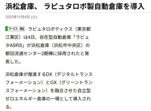 自在型自動倉庫「ラピュタASRS」https://www.lnews.jp/2025/11/r1104602.html