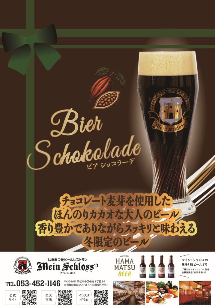 はままつ地ビールレストラン「マイン・シュロス」では、1月13日よりBier Schokolade(ビアショコラーデ)を販売します!