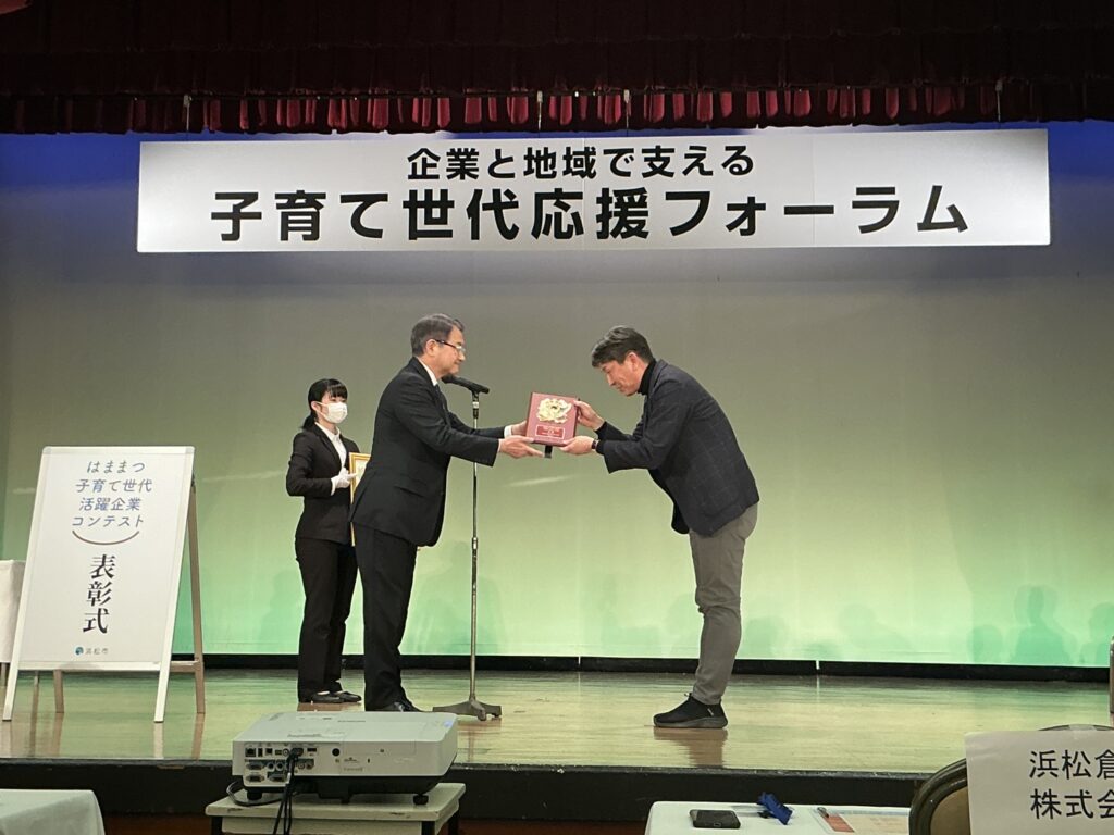 浜松倉庫では従業員の子育て支援に力を入れており、浜松市主催「はままつ子育て世代活躍企業コンテスト」において大賞を受賞しています。